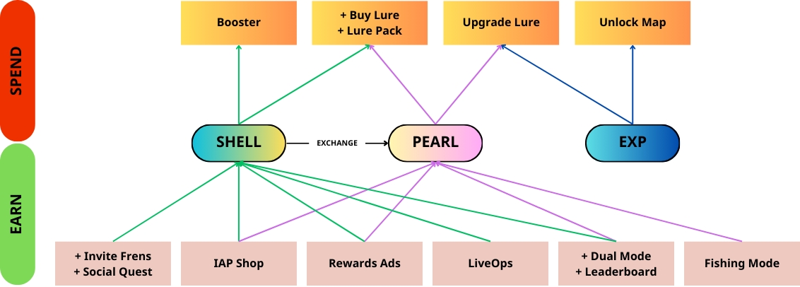 Fishtopia's economy is built around three primary currencies: Shells, Pearls, and EXP. Each currency serves a distinct purpose, influencing gameplay, progression, and social interaction.